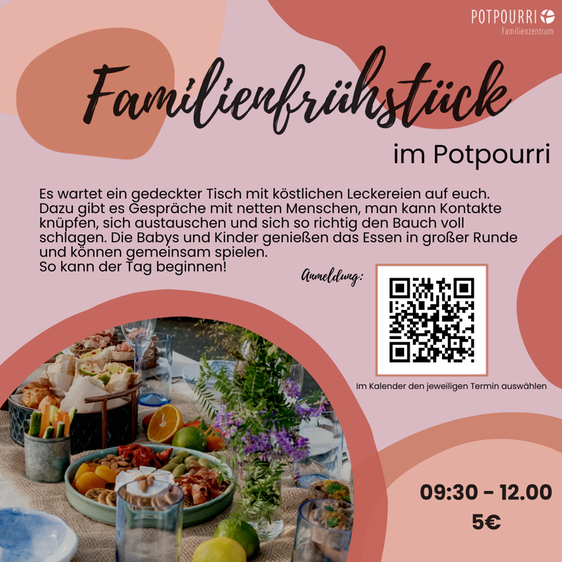 Es wartet ein gedeckter Tisch mit köstlichen Leckereien auf euch. Dazu gibt es Gespräche mit netten Menschen, man kann Kontakte knüpfen, sich austauschen und sich so richtig den Bauch voll schlagen. Die Babys und Kinder genießen das Essen in großer Runde und können gemeinsam spielen. So kann der Tag beginnen!