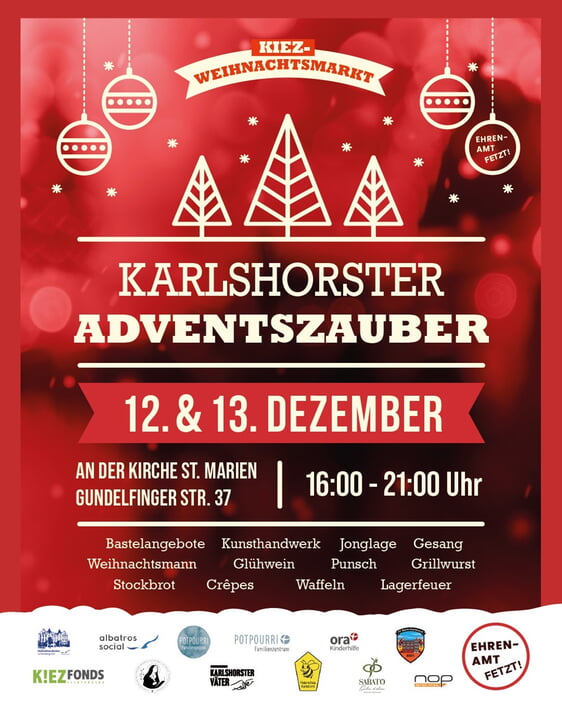 In diesem Jahr wird es richtig gemütlich in Karlshorst: Zum ersten Mal findet der Karlshorster Adventszauber statt - und wir vom Familienzentrum Potpourri sind gemeinsam mit vielen engagierten Akteur*innen aus dem Kiez an der Organisation beteiligt.